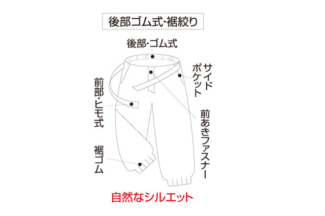 多くのご要望に応え、裾ゴム絞りタイプを作りました。