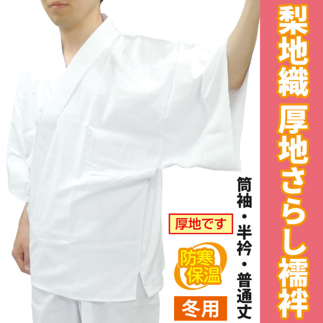 ■ 梨地織 厚地さらし襦袢 半衿付 筒袖 普通丈(冬用)【半襦袢 男性用 寺院用 神職用】 (商品番号2293)