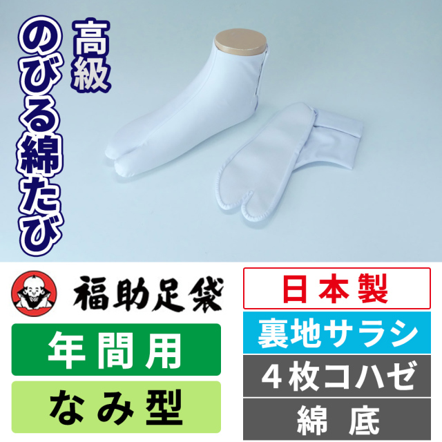 ■  福助足袋 高級のびる綿たび 裏地サラシ/なみ型/4枚コハゼ/綿底/伸びる足袋/年間用 【5足セット】
